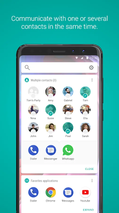 - Long press on one or several contacts and select your preferred Apps to communicate