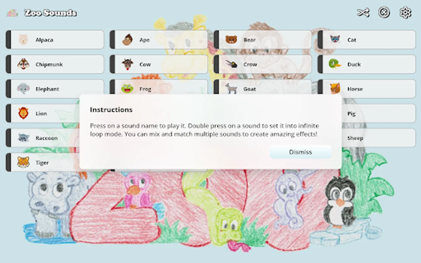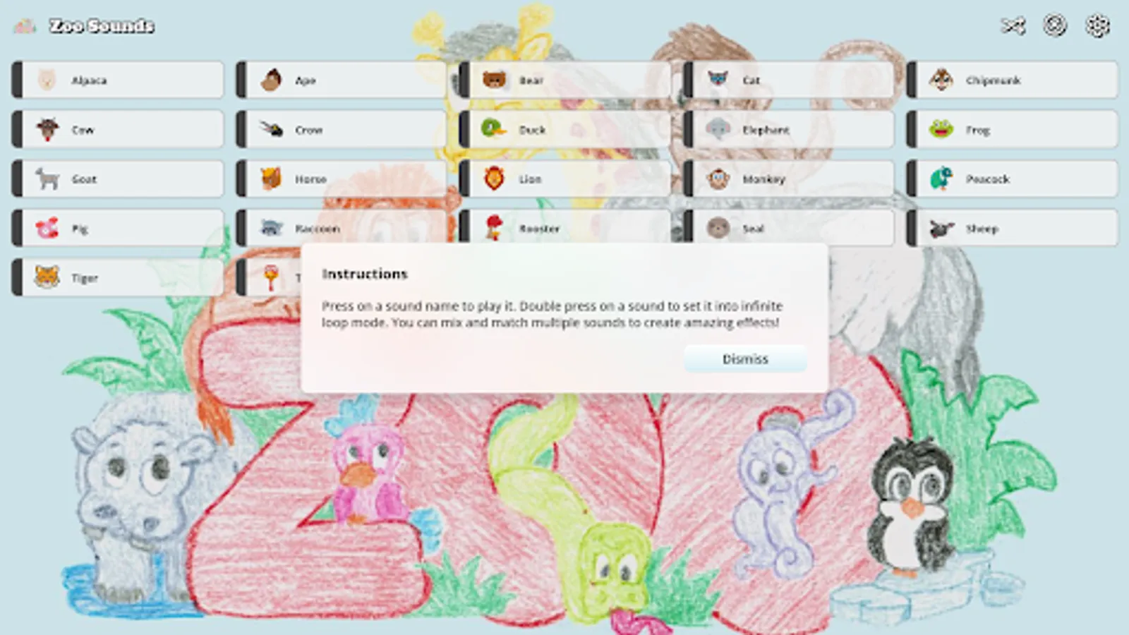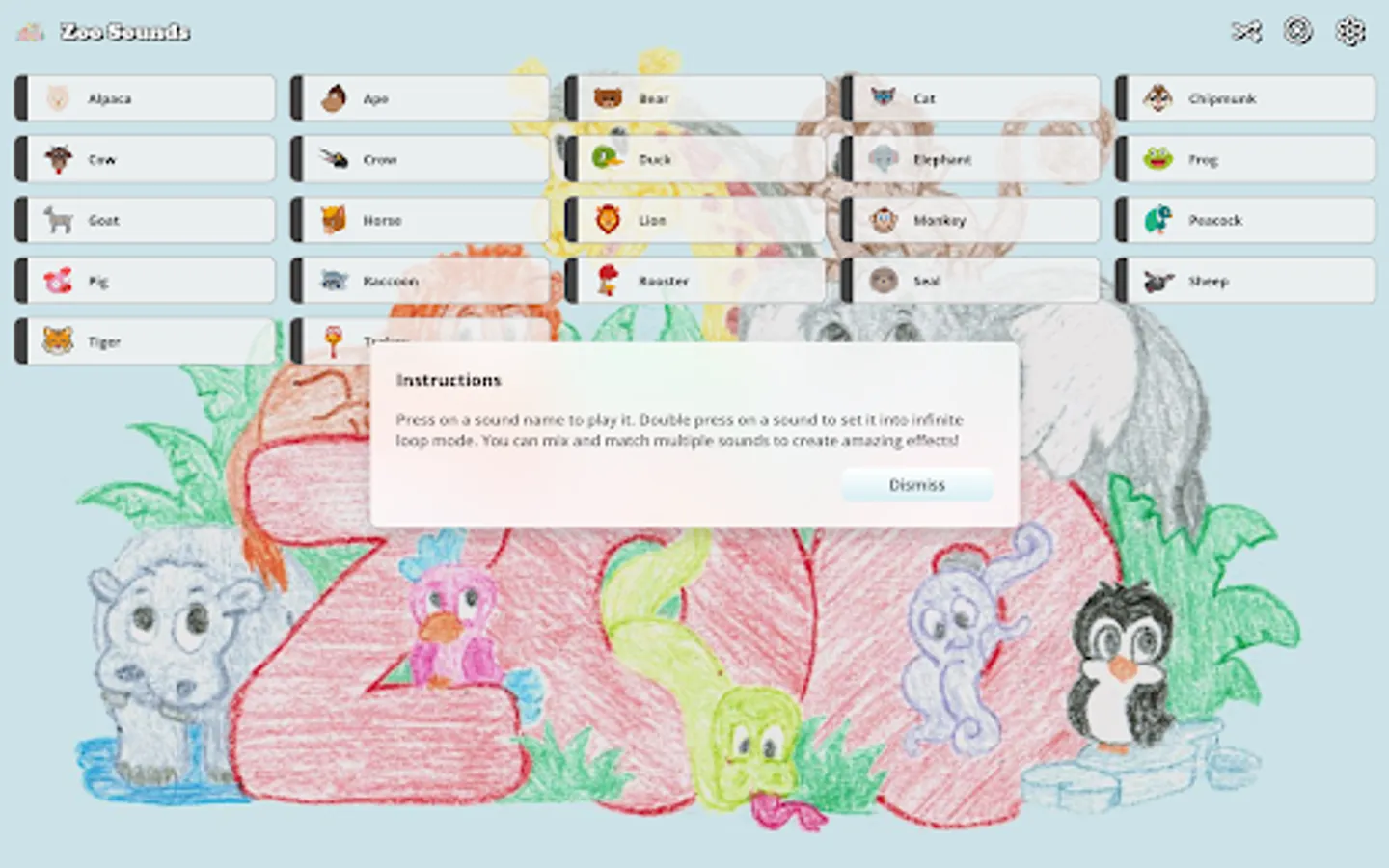 Zoo Sounds is a fun and free soundboard app for kids and adults of all ages! Featuring fun sound effects from many different zoo animals. You can play then as single tracks, loop them, or mix and match them together to create a full safari! Why go to the zoo when you can bring the zoo to you!