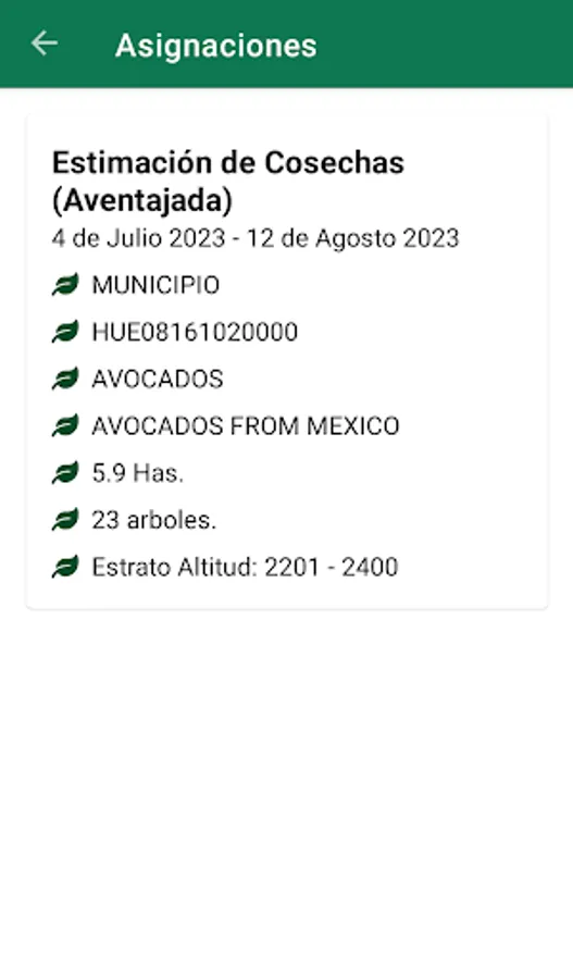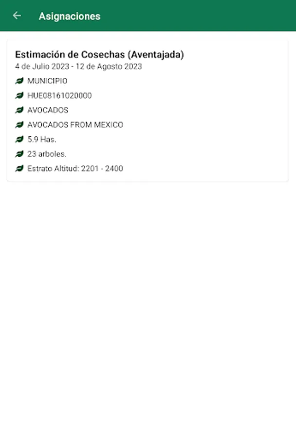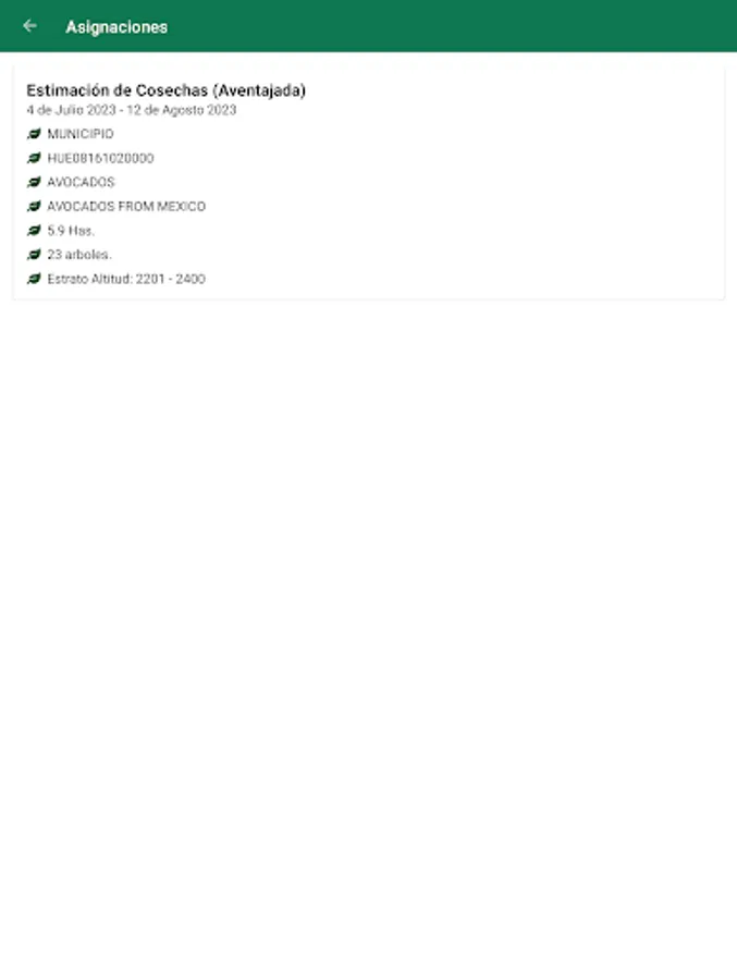 IDM estimation is the exclusive application designed for the precise collection of key data in each of the orchards participating in the avocado export program. It is the essential tool to estimate the harvest reliably and efficiently in each of the estimation events of the season.