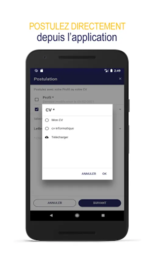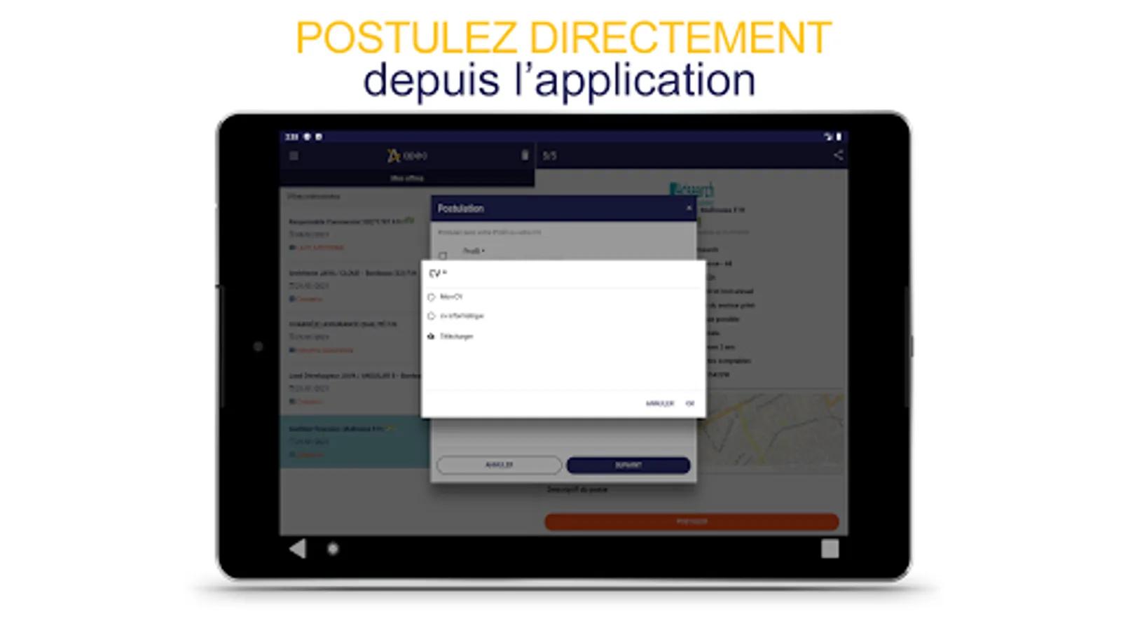- Apply in a few clicks wherever you are without leaving the application.