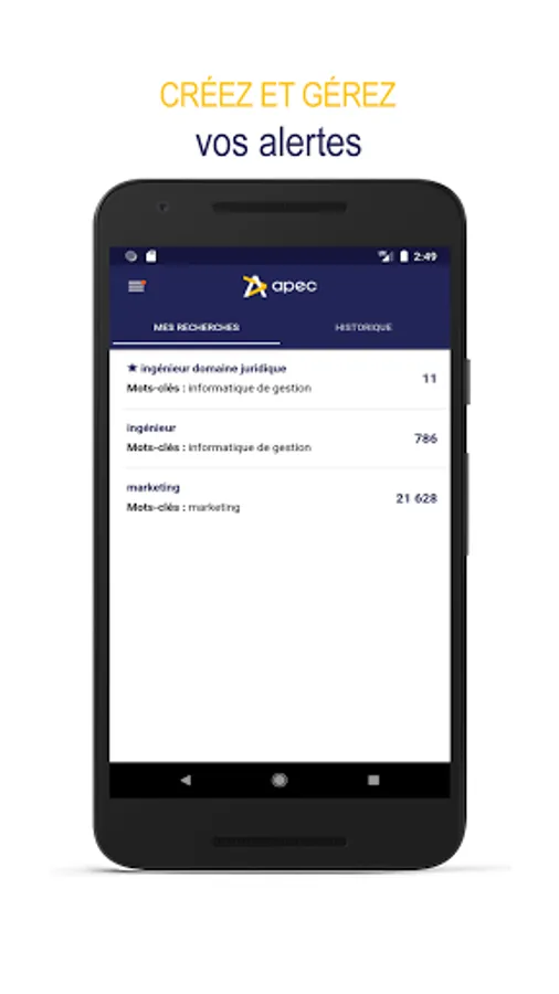 - Create your alerts and find them on your Apec.fr space.