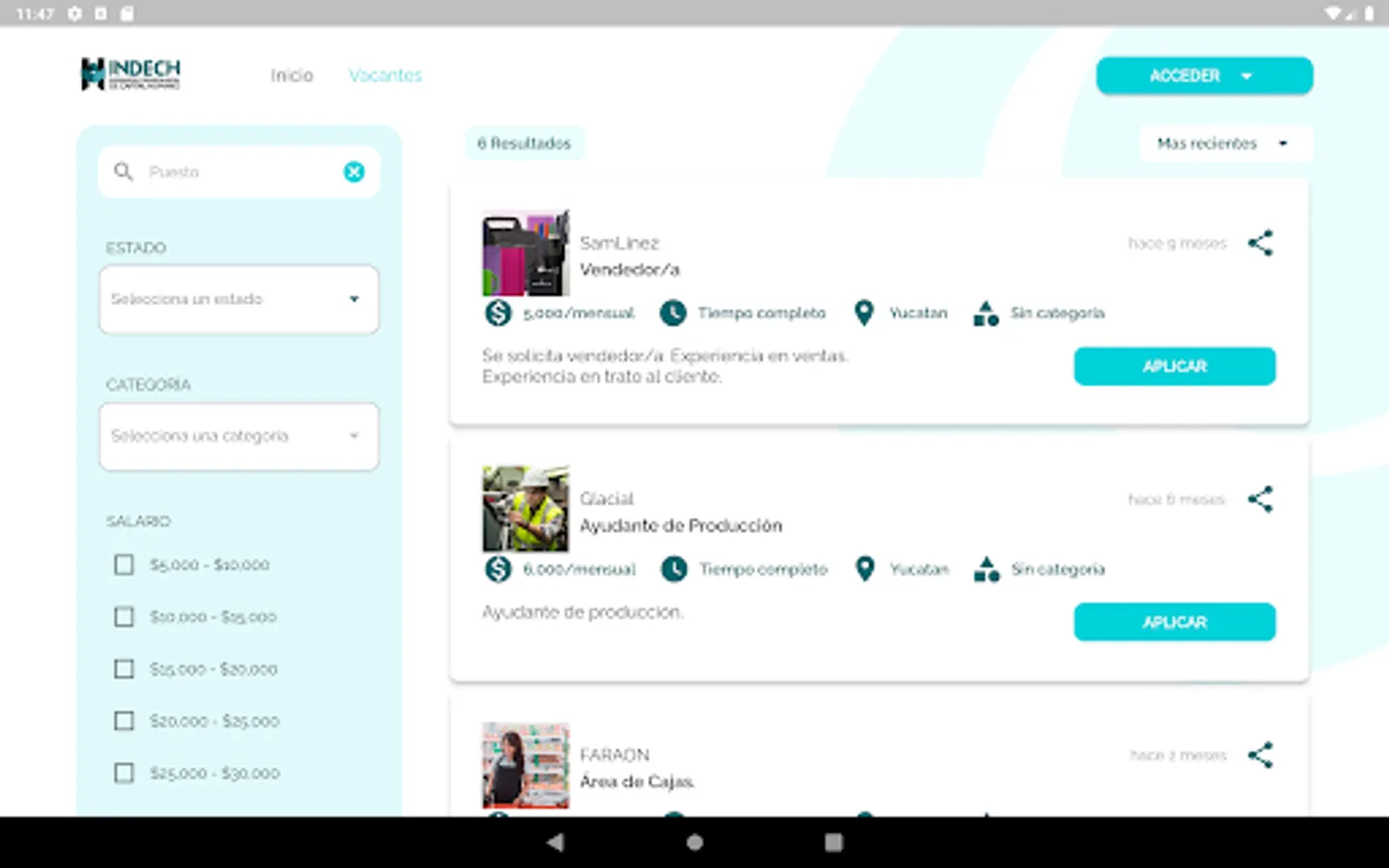 View available job offers, apply and participate in the selection process that the different companies with available vacancies have.