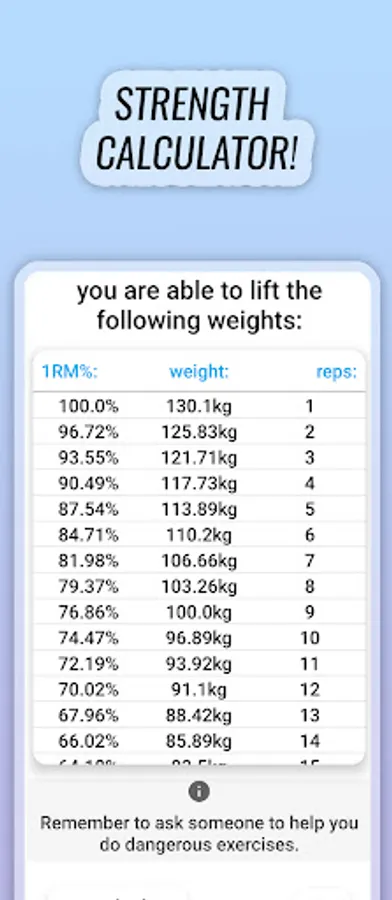Calculate your 1RM (One Repetition Maximum) or maximum RM to determine your strength levels for different exercises. Additionally, the calculator helps you identify how much weight you can safely lift for a specific number of repetitions 🏋️♂️
