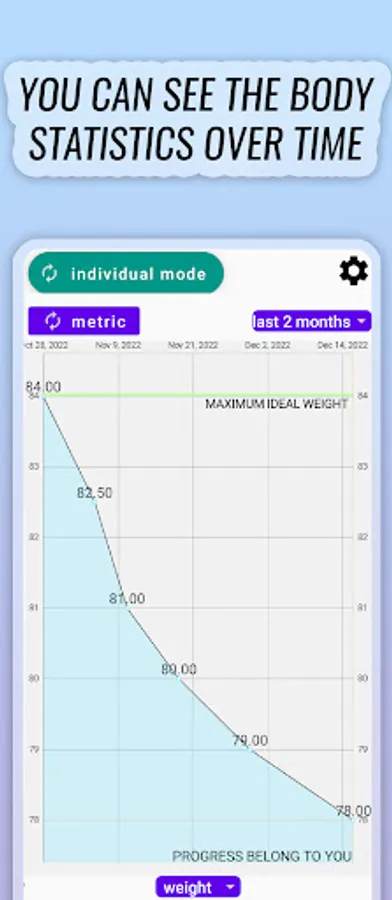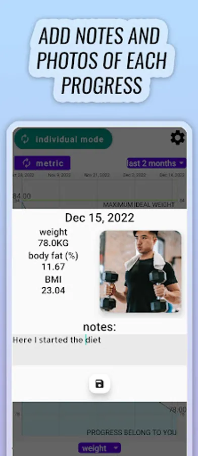 Ideal Weight has a "Patients Mode" for nutritionists and personal trainers. Easily store and monitor the progress of multiple clients. Access client data and provide personalized guidance based on their unique body composition. Switch seamlessly between modes to suit your needs.