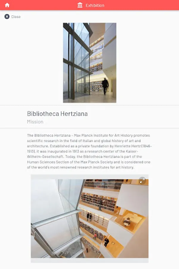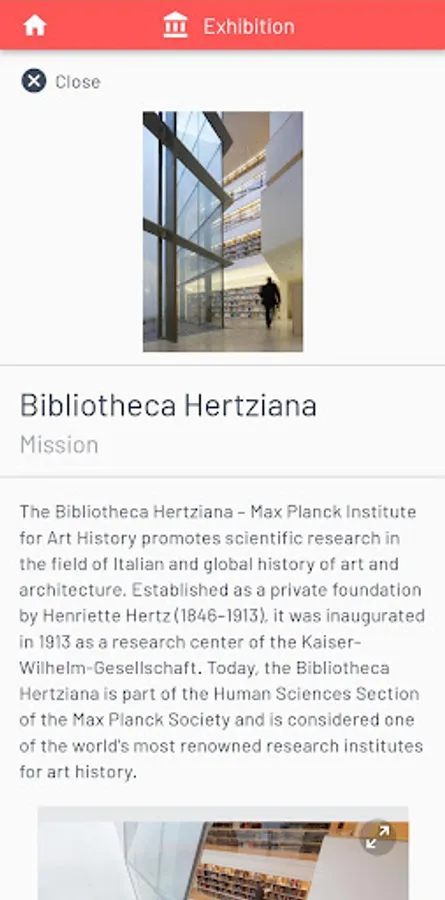 The Bibliotheca Hertziana – Max Planck Institute for Art History promotes scientific research in the field of Italian and global history of art and architecture. Established as a private foundation by Henriette Hertz (1846–1913), it was inaugurated in 1913 as a research center of the Kaiser-Wilhelm-Gesellschaft. Today, the Bibliotheca Hertziana is part of the Human Sciences Section of the Max Planck Society and is considered one of the world's most renowned research institutes for art history.