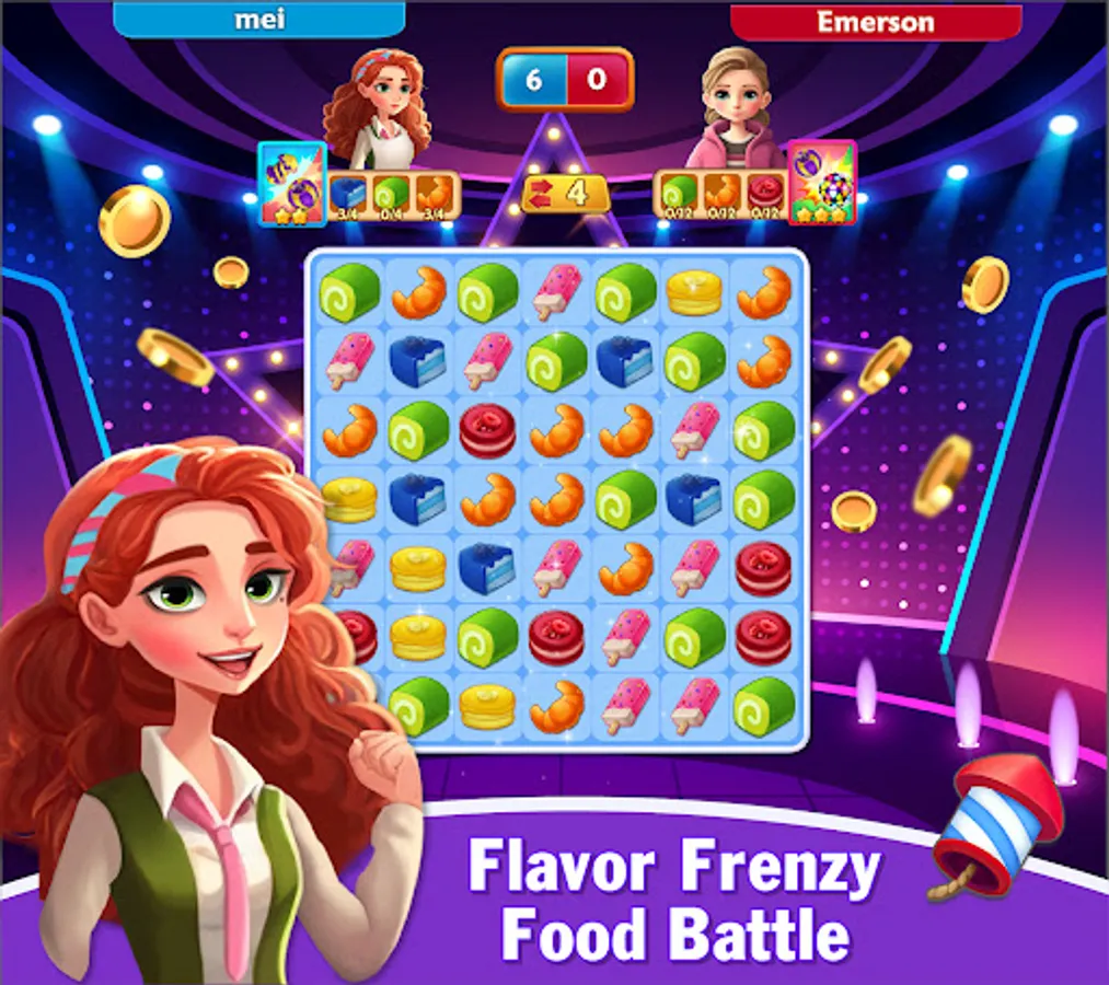 Flavor Frenzy offers a delightful assortment of treats, including seafood, jam, and ice-cream. Experience your favorite match game modes with a touch of excitement!