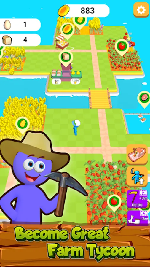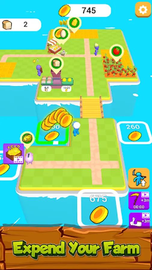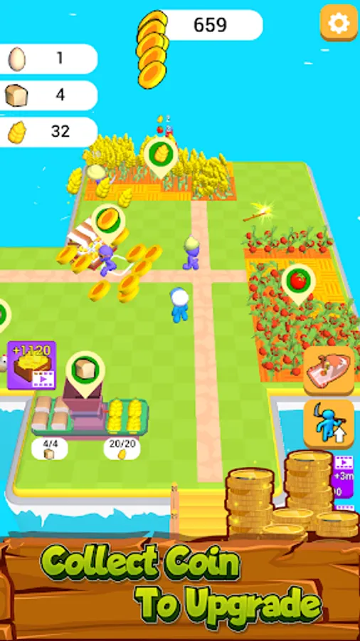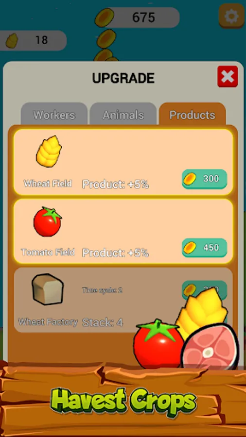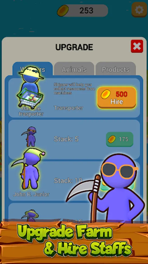 π Trade and Expand: Hire more staffs by coin you gained, unlock resources, and expand your farm.