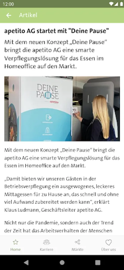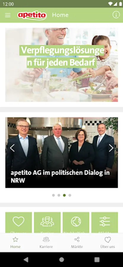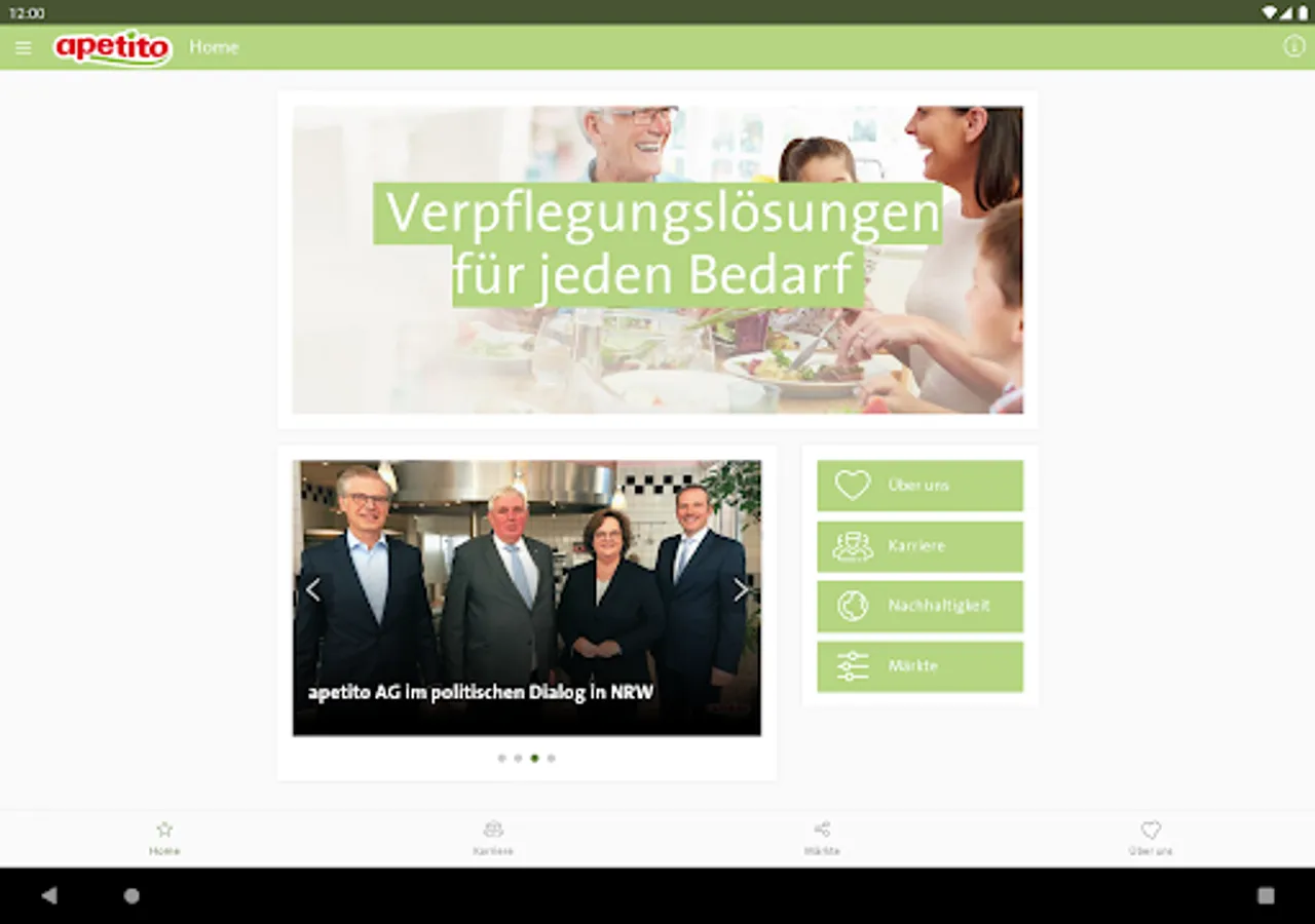 Are you interested in apetito as an expert in catering solutions, are you planning your next career step or would you simply like to find out more about apetito's corporate culture? Then look for "About apetito" in the app menu. Here you will find all information about the company, benefits for employees, the compatibility of family and work and much more useful information.