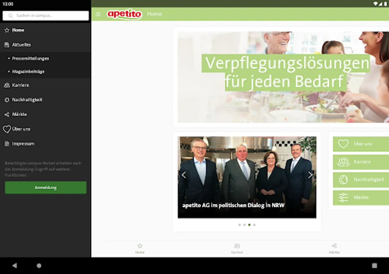The apetito campus app offers partners, interested parties, employees and customers current information about the company and much more!