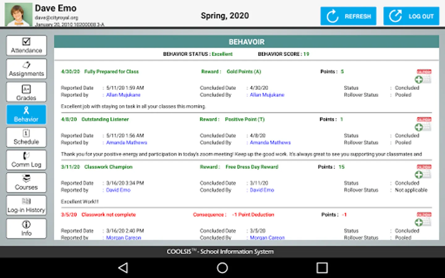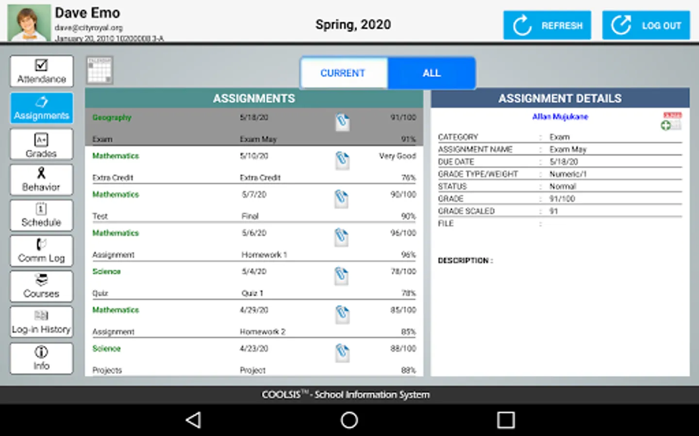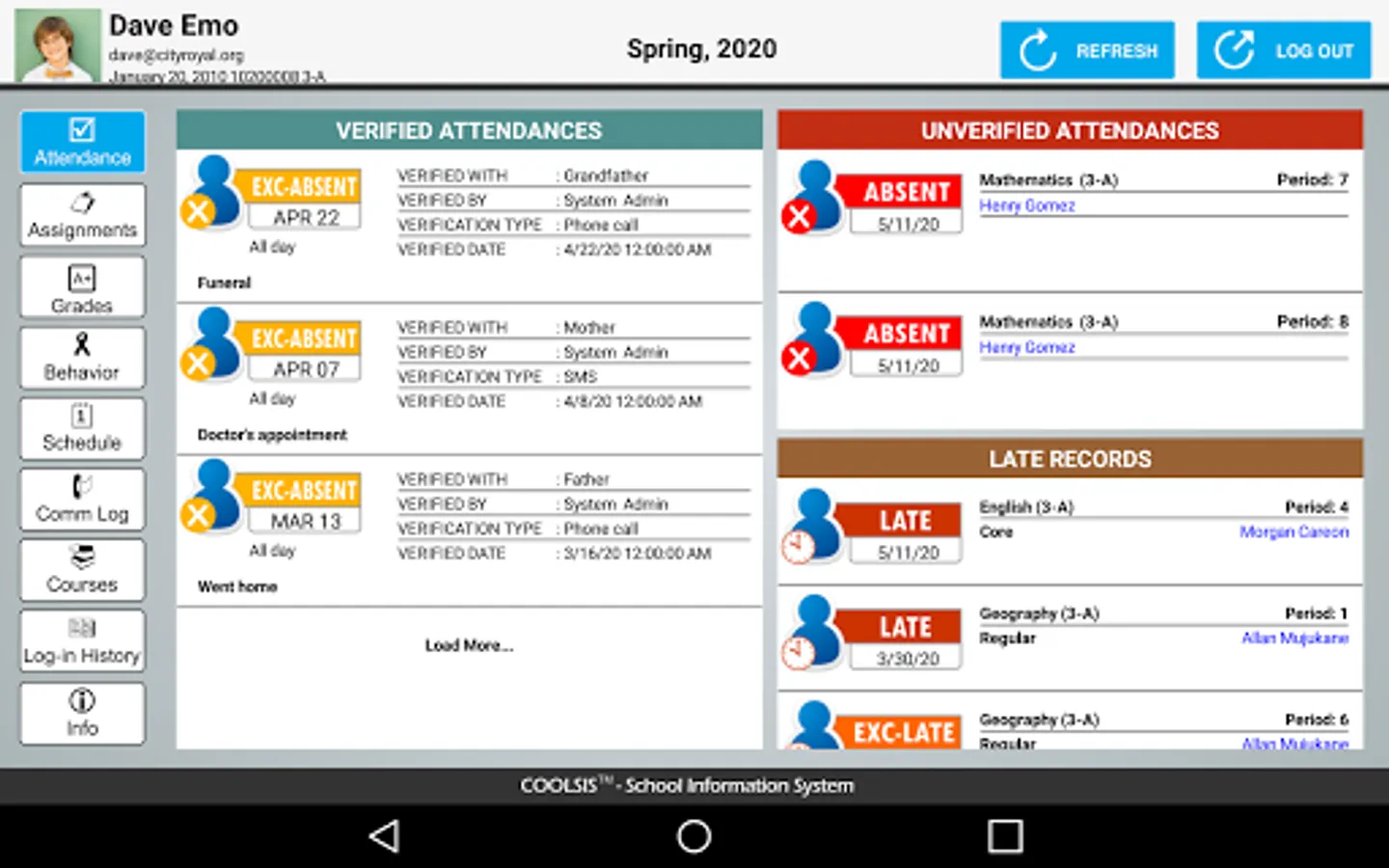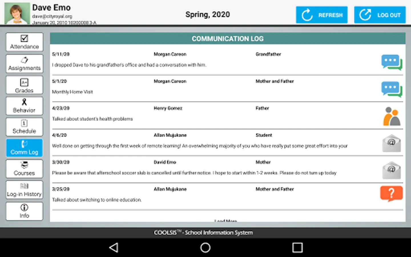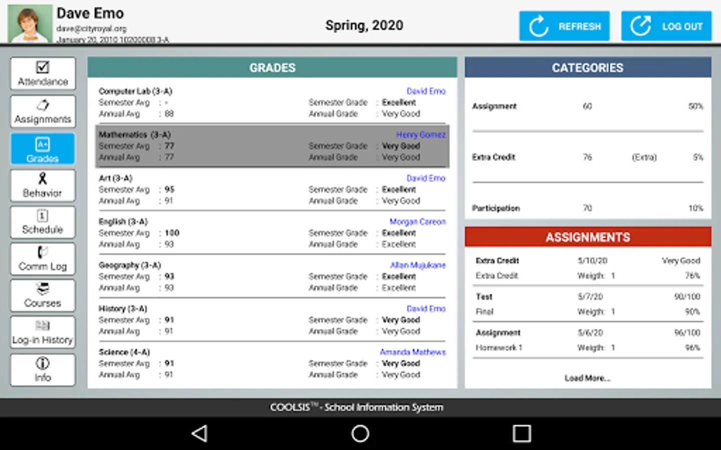 With COOLSIS Family Access, parents and students receive real-time access to necessary and useful information such as Attendance, Assignments, Grades, Behavior, Schedule, Courses, Communication Log, Log-in History and more to stay up-to-date with the school.