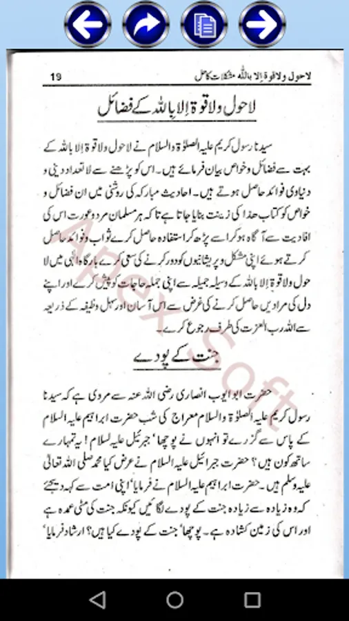Isi hawaalay say LaaHaula Wala Quwwata Illa Billa Hil Aliyyul Azeem kay wazaif, amliyaat aur taaweezat ko iss application main paish kernay ki saadat haasil ki jaa rahi hai. In this application, LaaHaula Wala Quwwata Illa Billa ko mukhtalif auqaat aur a'adaad kay mutaabiq perhnay kay wazaif o aa'maal ka biyaan kiya gya hai aur boht he moassar taweezat ko is app ki zeenat banaya gya hai.