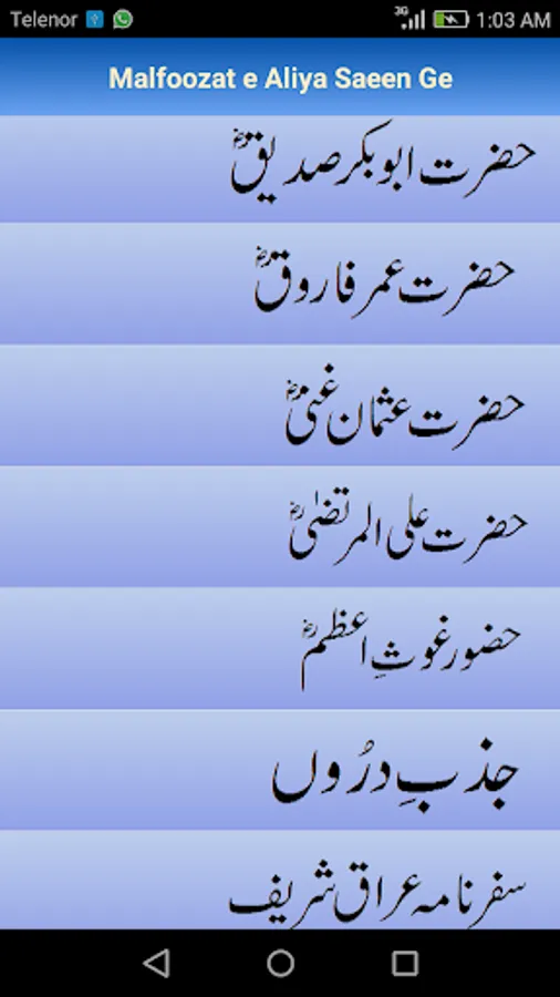 This is purely an Islamic Urdu app which contains following seven Urdu booklets written by the Greatest Living Sufi Saint and Spiritual Guide Huzrat Sufi Nisar Ahmad known to the world as Saeen Ge: