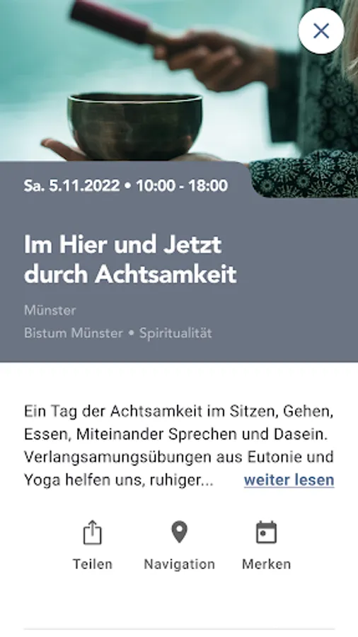 You can save the appointment in your calendar and recommend it to your friends or family via your preferred messenger or by email. Finally, if you need more information, you can also let yourself be guided to the event page of the respective provider.
