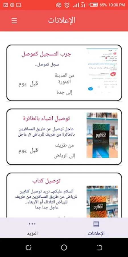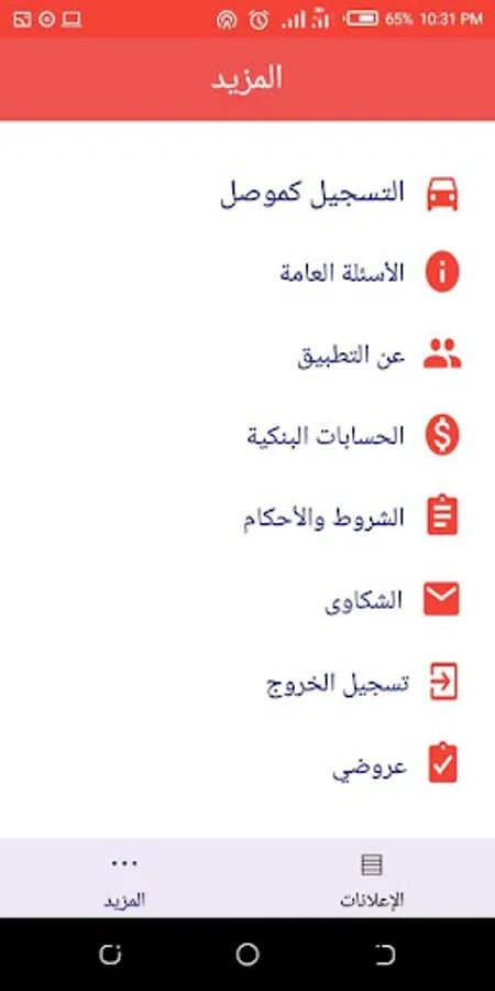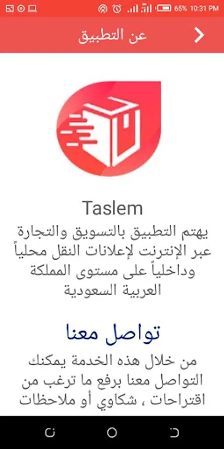 The application provides delivery service marketing advertising delivery and transport locally and internally at the level of the Kingdom It is a platform to add ads requests for delivery and transportation only and not an application offers shipping and transport services