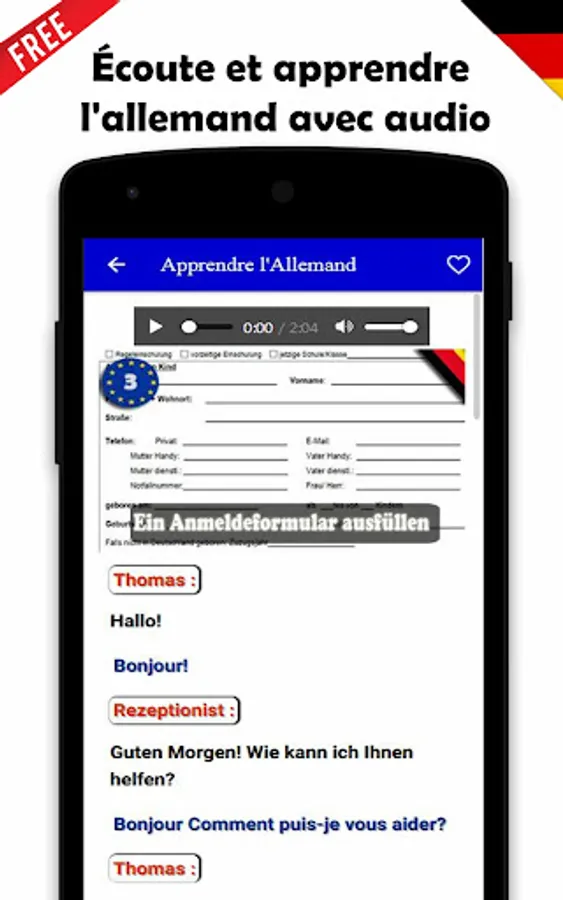 With Listening and learning German with audio app, you can learn German and have fun, fast and efficient!