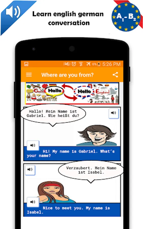 Learn two languages at the same time english-German in a simple and easy way with conversation.