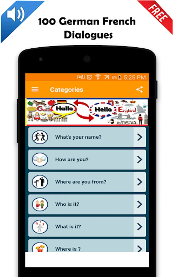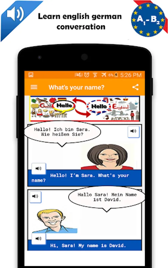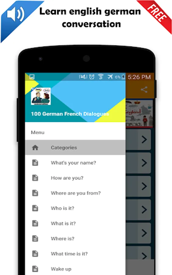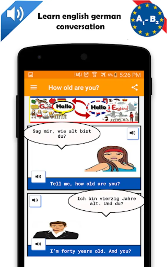 - Main features: ability to select content - more than 100 ordinary conversations (with sound) — plus 2000 most common english and German phrases and words — Easy to use.