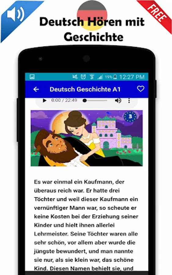 Features German Stories: (Easy language learning, learn a language by reading and listening to stories, German stories offering you the most important vocabulary English, German speaking history)