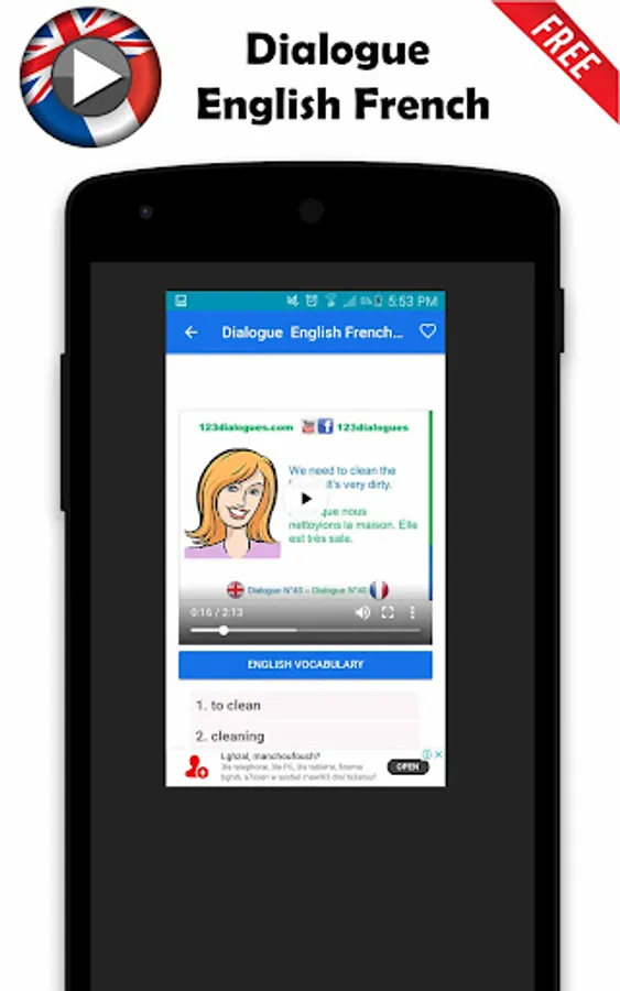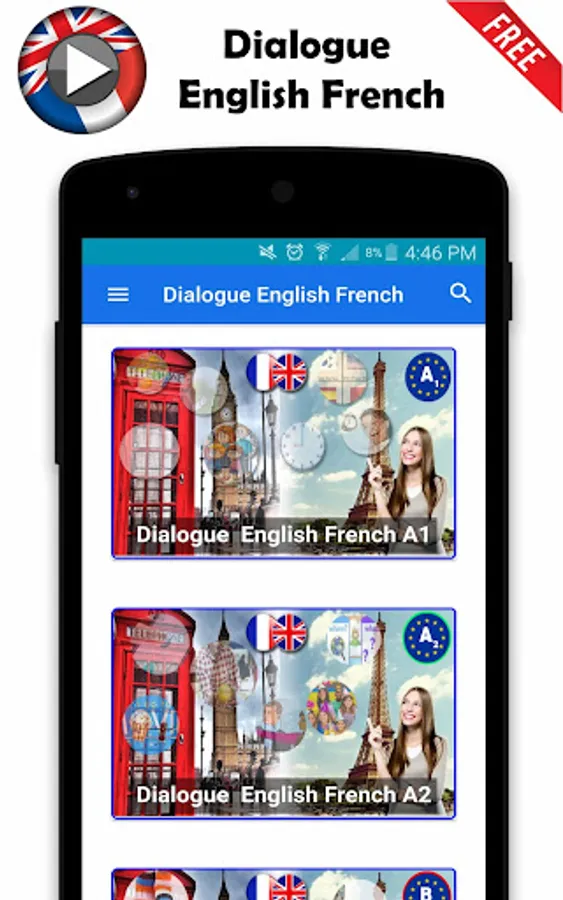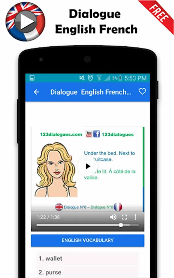 Come and learn french and english with this app fr-eng free. French and English courses for beginners and students you can learn new skills in the world of employment - speaking French or English is an asset to increase your chances on the international job market Or to travel , Dialogue English French age and birthdays , Dialogue English French Love and Marriage and get to know each other