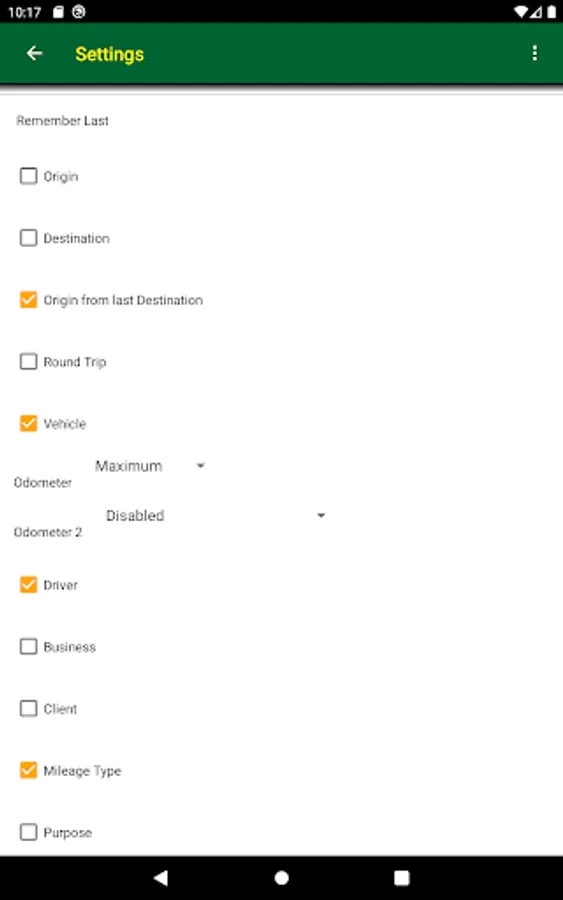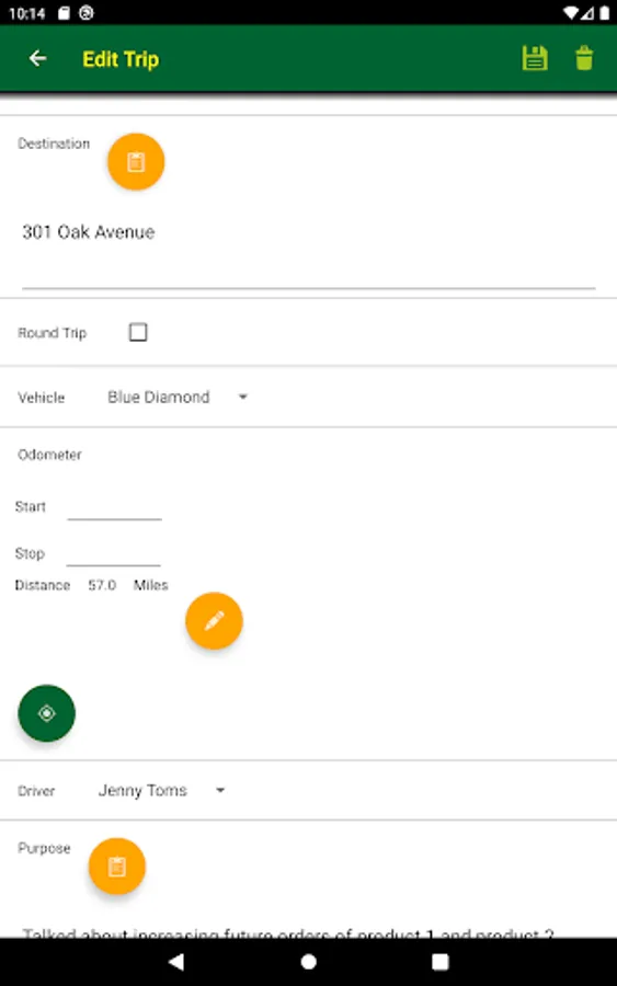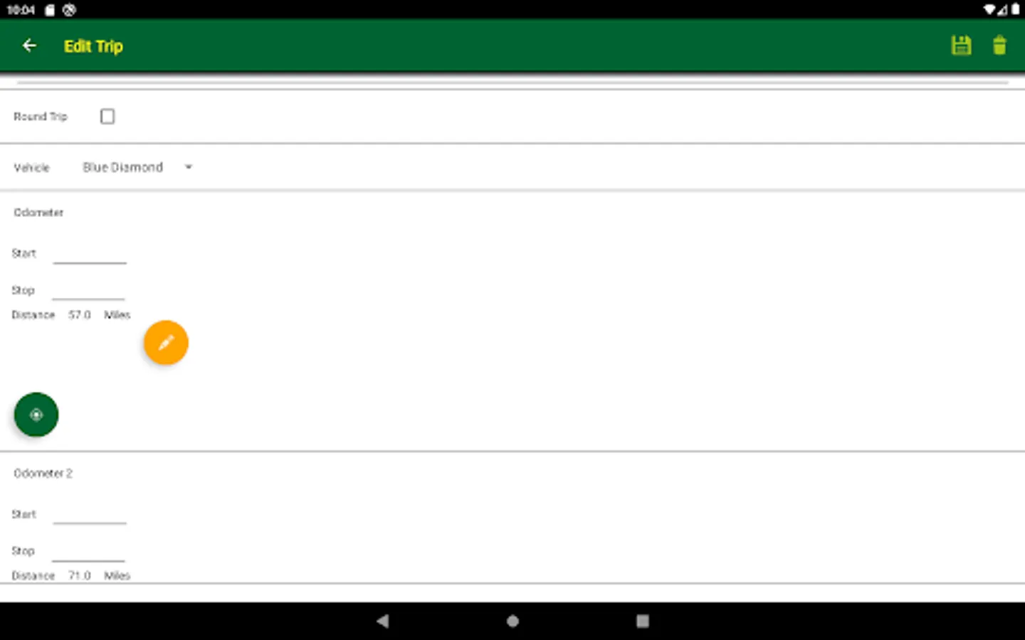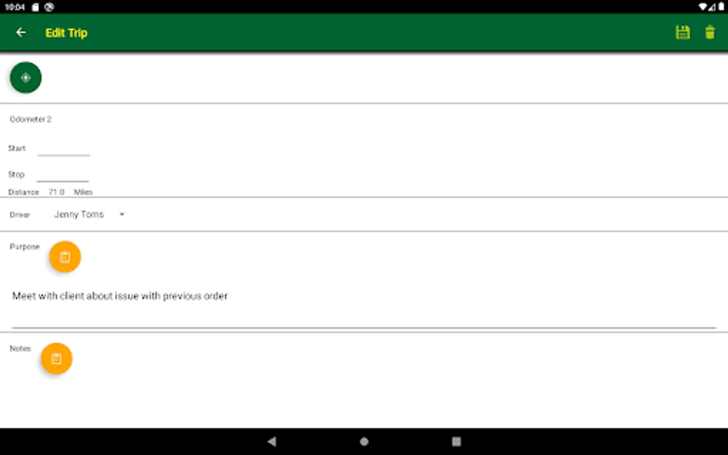 - Flexibility to enter the odometer start/stop and have the distance calculated automatically or enter the distance manually