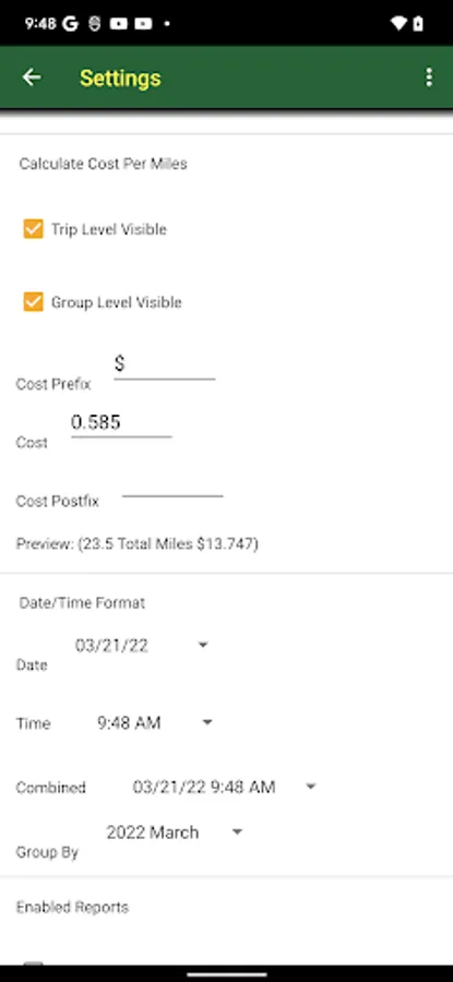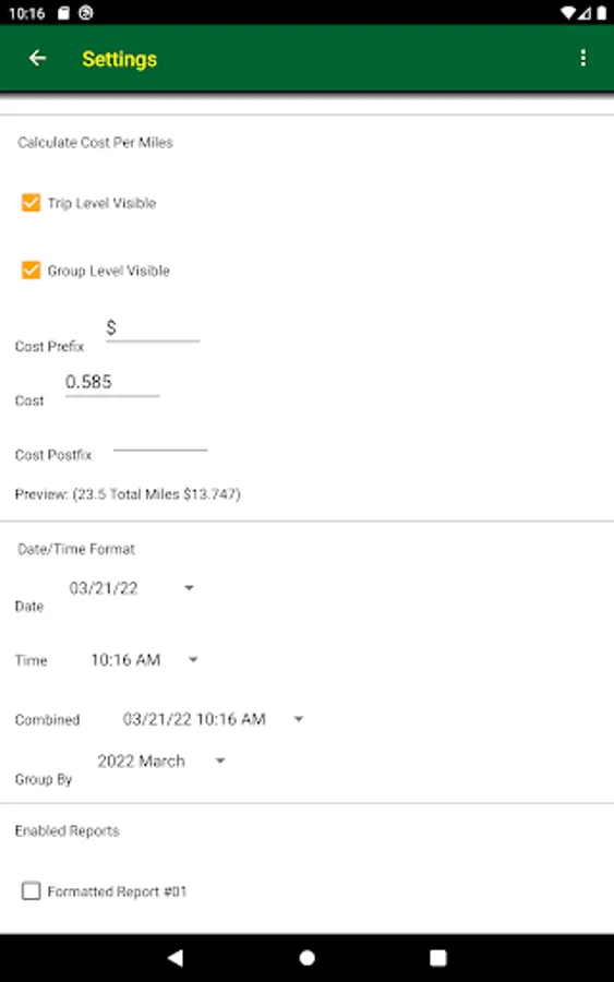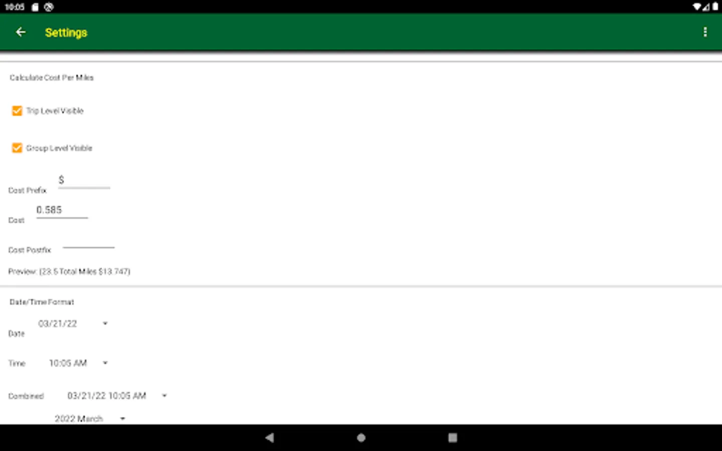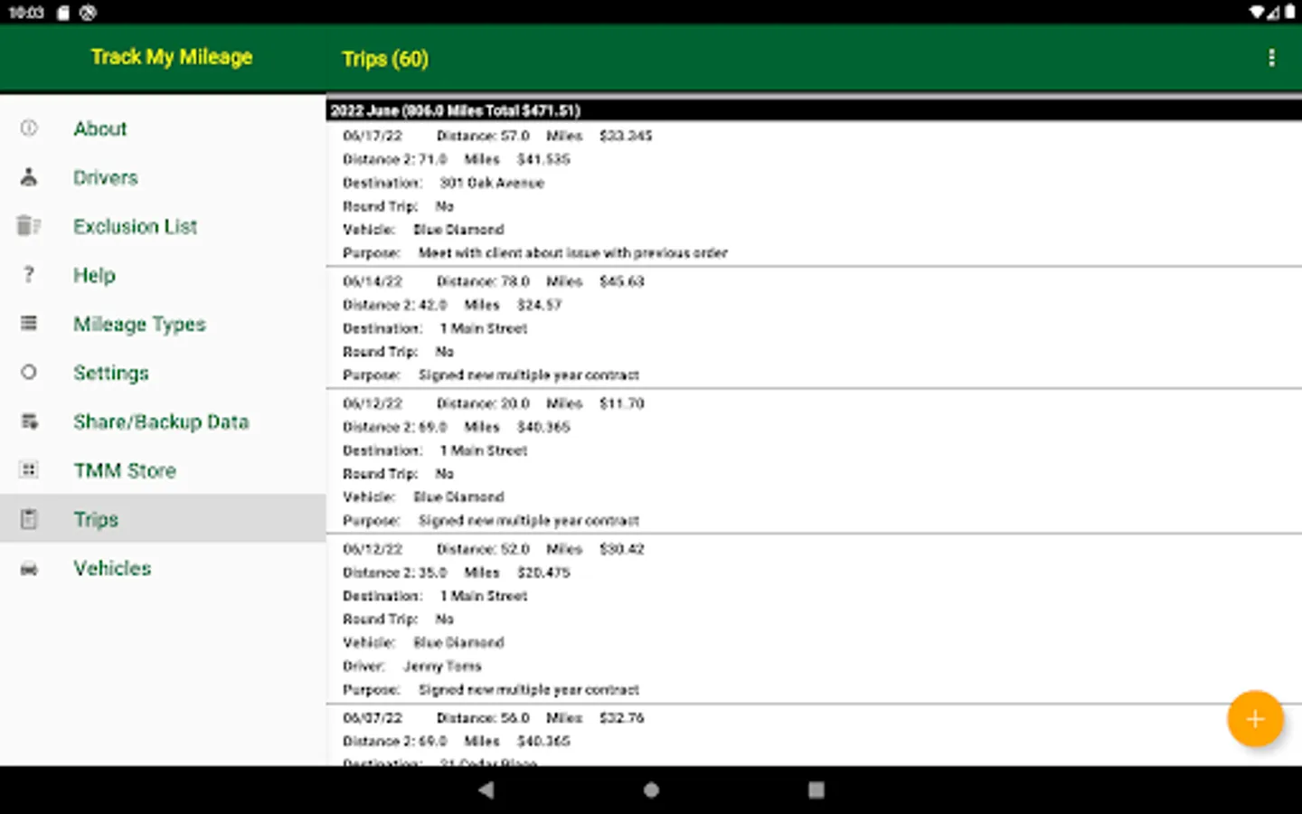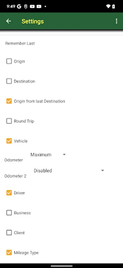 - Flexibility to enter the odometer start/stop and have the distance calculated automatically or enter the distance manually