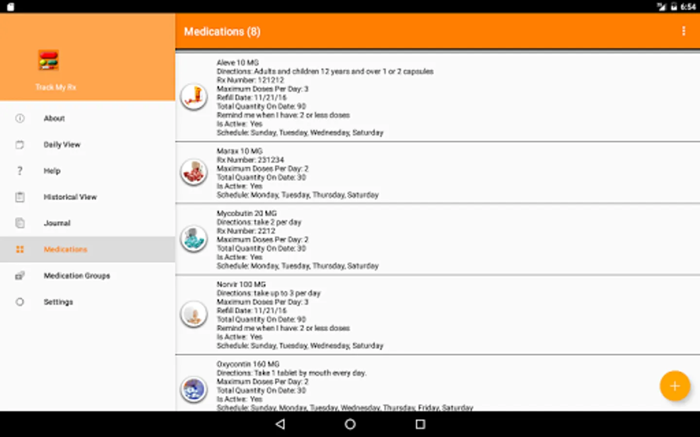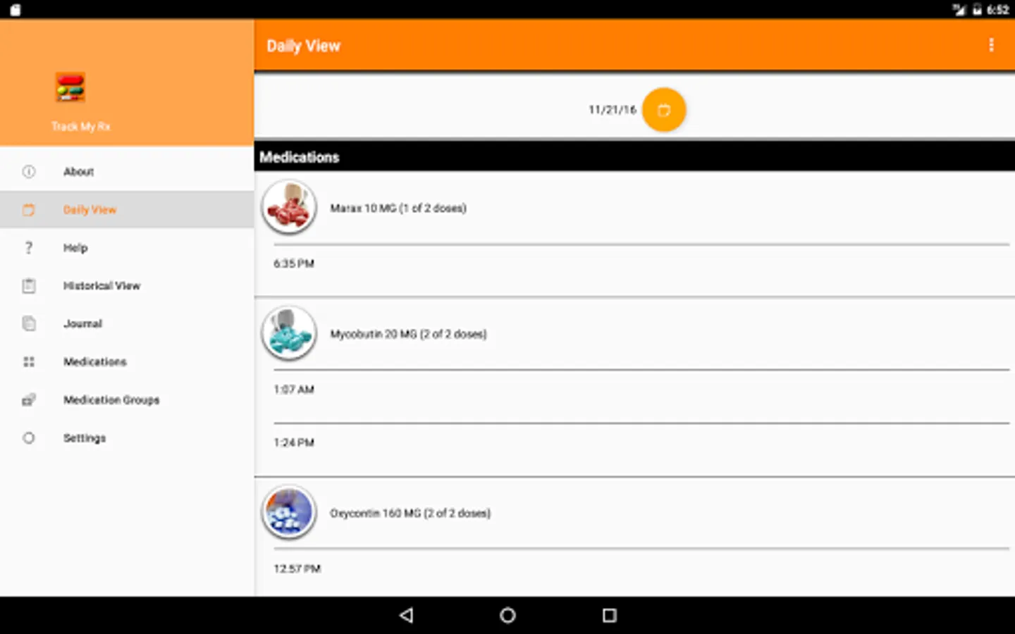 With the cost of health care on the rise, it is important to stay on top of taking the medications prescribed by your doctor. No matter if the medicine is for diabetes, high blood pressure, high cholesterol, pain management or substance abuse treatment, Track My Rx has you covered. To help you be proactive with your (or your family’s) healthcare, Track My Rx provides a journal so you can monitor health treatments and easily share that information with your healthcare provider. Concerned about exceeding your maximum daily dosage? Track My Rx prompts you before that can happen. Track My Rx allows you to setup refill reminders. If you take certain medications only on specific days, Track My Rx gives you the ability to choose a schedule. Do you need to take several medications at once? Then create a medication group (blister pack) and record all medications with a single click or tap. To avoid confusion, provide your own image for each medication or medication group. Easily share or export your medication log, journal entries, medications and medication groups for doctor’s visits. And finally Track My Rx is available in 21 languages.