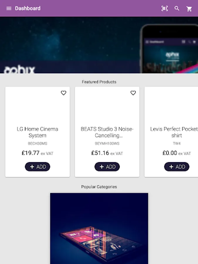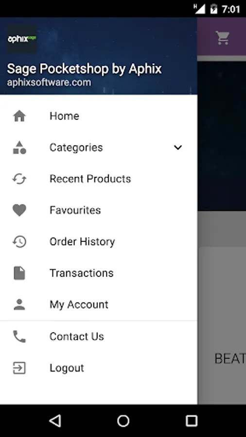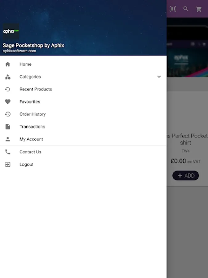 An Aphix Software e-commerce app for online and offline order composition. Compatible with the Sage 200 ERP.