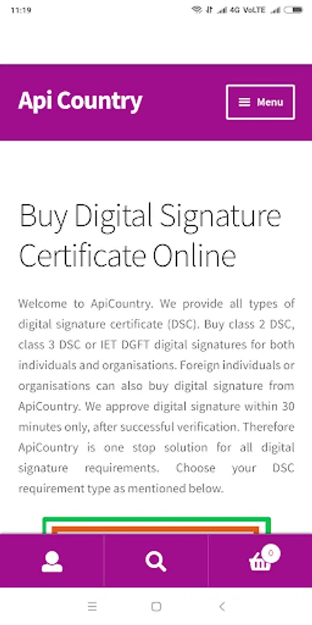 Welcome to ApiCountry. We provide all types of digital signature certificate (DSC). Buy class 2 DSC, class 3 DSC or IET DGFT digital signatures for both individuals and organizations. Foreign individuals or organizations can also buy digital signature from ApiCountry. We approve digital signature within 30 minutes only, after successful verification. Therefore ApiCountry is one stop solution for all digital signature requirements. Just choose your type of DSC & complete the verification part to get your DSC.