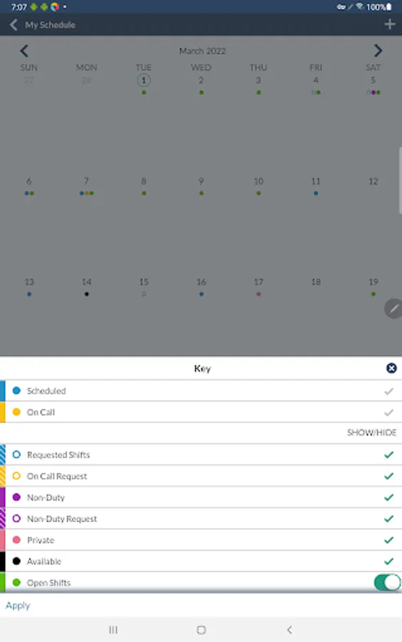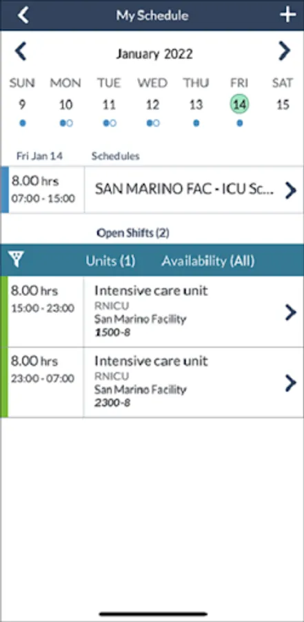 • Request open shifts and trade.
