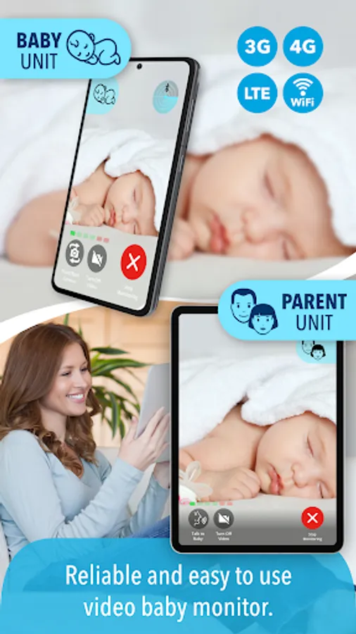 Reliable and easy to use multiplatform baby monitor. Watch live video streaming of your baby and hear every noise on your phone or tablet.
