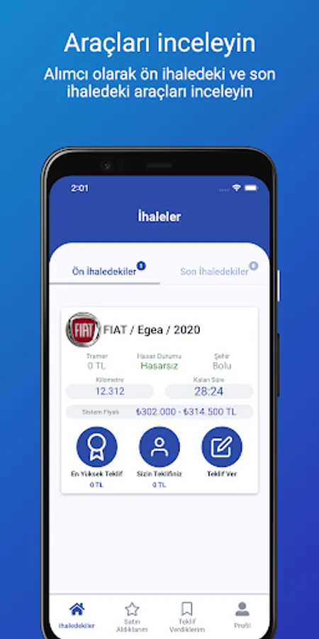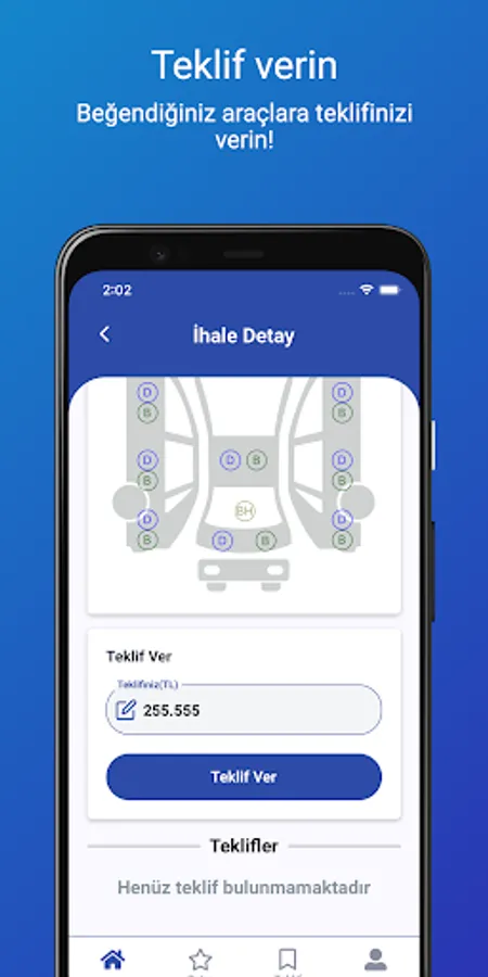 - Examine the vehicles in the pre-bidding, bid for the vehicles you like!