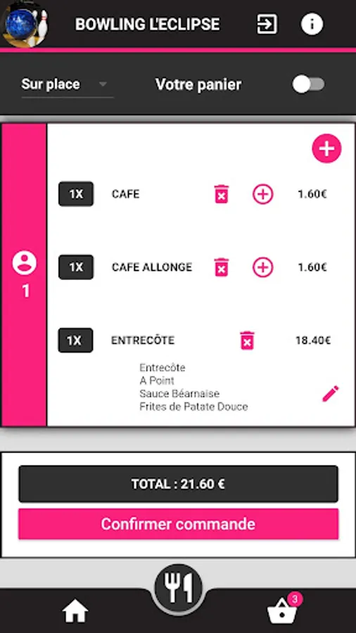 You have your order confirmation on the application to allow identification during service or withdrawal of your order. The order is poured instantly and simultaneously into the kitchen and then at the checkout.