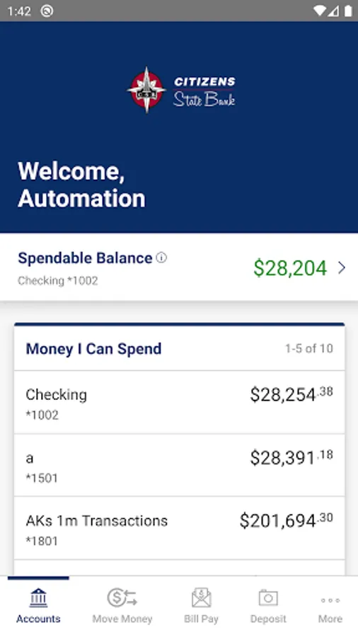 •Check your latest account balance and search recent transactions by date, amount, or check number.