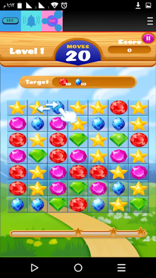 * Match 5 jewels in a line to create special colored gems. Colorful jewels can destroy all jewels of the same color with the selected jewels.