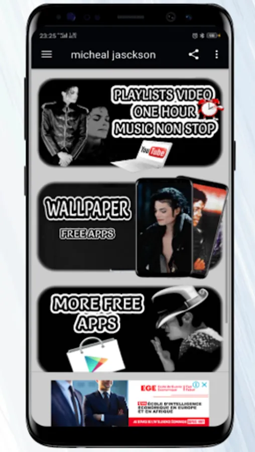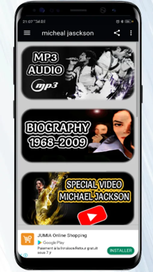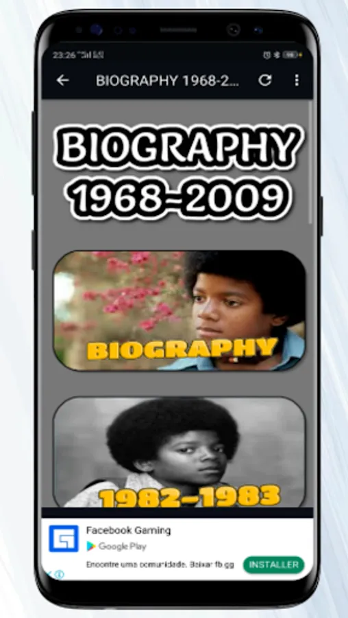 The application is free, fast, and light. It also gives you the possibility to know a lot about the king of pop Michael Jackson from the beginning of his journey in music to the day and let 's know where you can learn a lot about his life and his left artistic and professional music application is more than wonderful I recommend to try it and take advantage of it in all the information we offer you