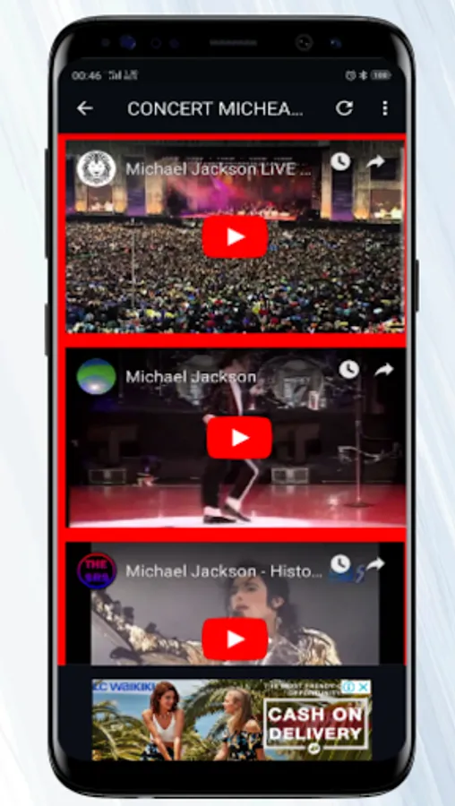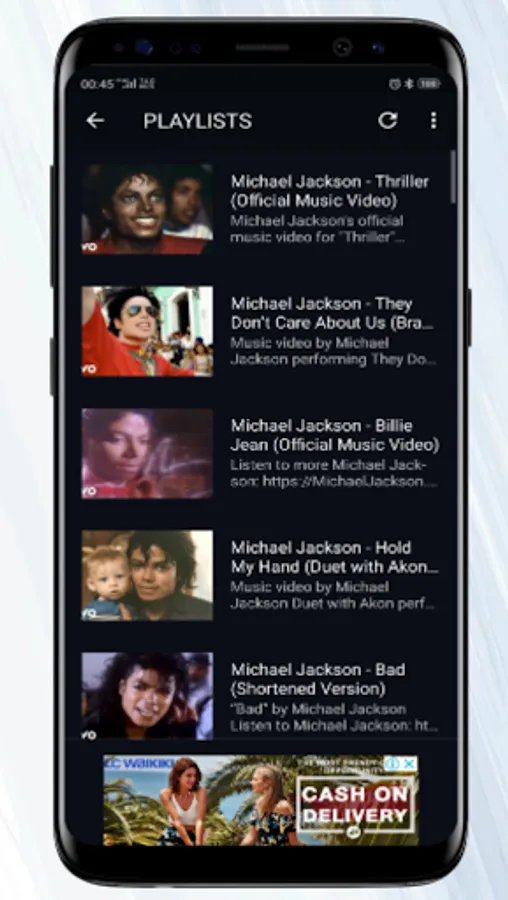The application gives you the possibility to see all the videos, listen and enjoy all the songs and videos of pop king Michael Jackson
