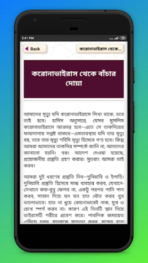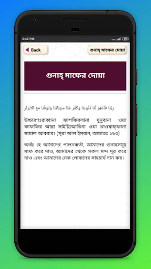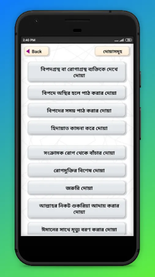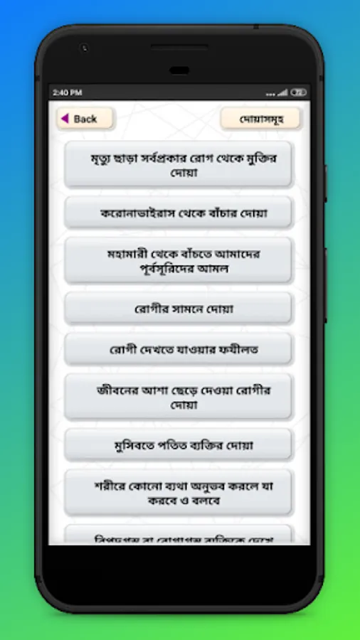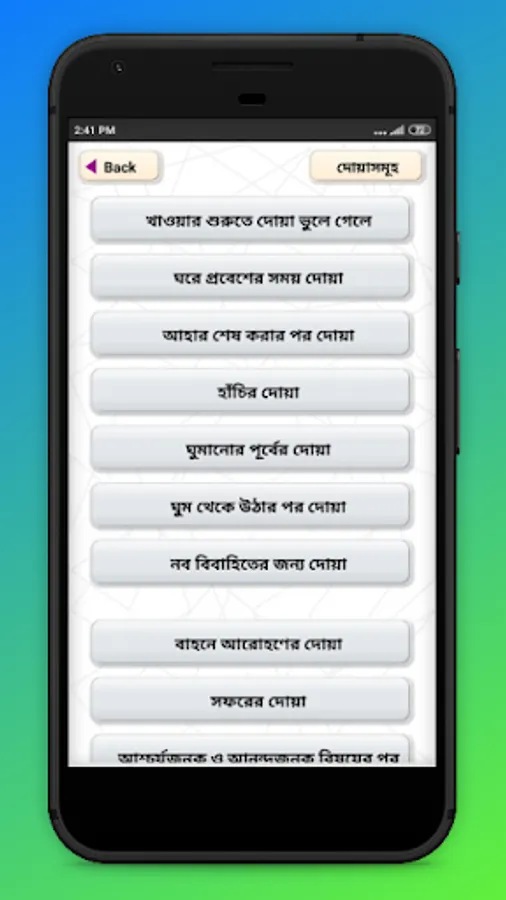 Download this app and find out some of the necessary prayers for the whole day. Prayer for waking up at the beginning of the day, prayer for sleeping at the end of the day, prayer for going out of the house (masnun dua), prayer for entering the house, prayer for entering the mosque, prayer for entering the mosque, prayer for getting out of the car, prayer for parents, prayer for eating , Blessings to get rid of difficult diseases, Blessings to get rid of all kinds of diseases, Blessings to get rid of danger, etc. All these daily prayers, prayers for deliverance from the disease and necessary prayers will prevent you from committing sins step by step.