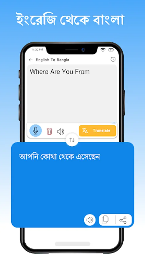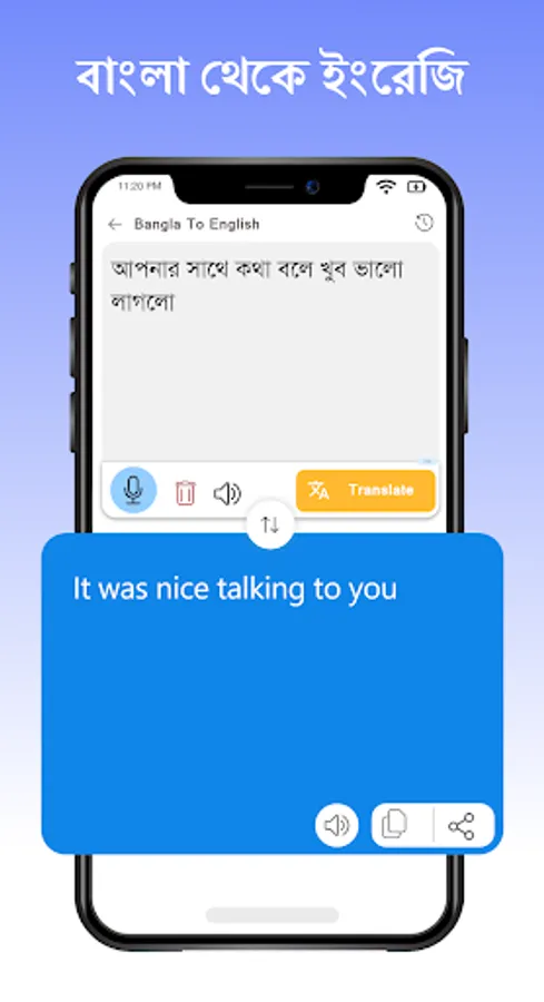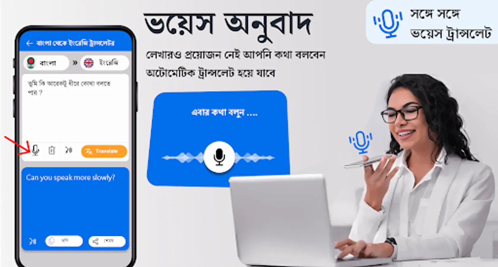 Do you love to speak in Bangla language to your Bengali friends? Or are you a Bengali looking for a Bangla to English free translation app to boost your communication? No matter what kind of communication situation you are facing, our translator apps make it easier for you to find, record and translate new words. Simply tap on voice search button and hold it to record your sentences. Translate sentences from Bangla to English or Bangla to Hindi and vice versa to enjoy hassle-free communication with your friends. Try the app today!