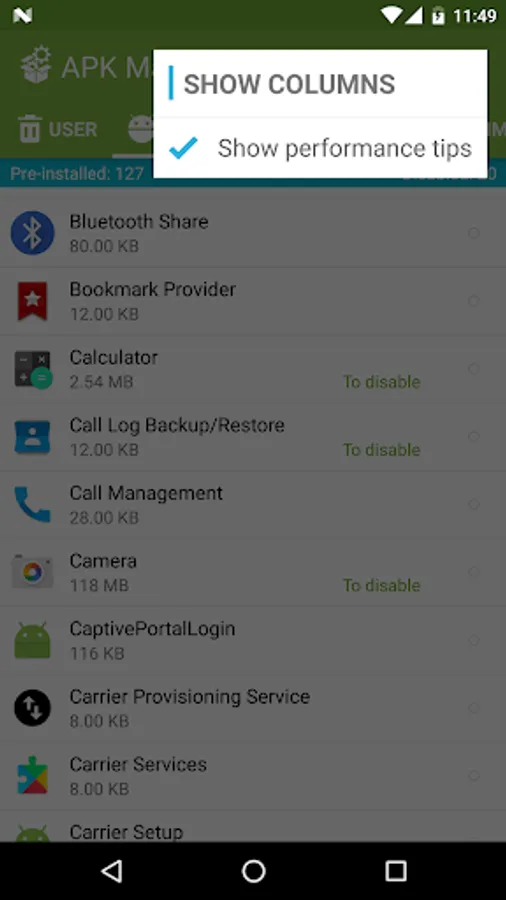 • Performance Tips - Easily disable bloatware. (pre-installed apps).