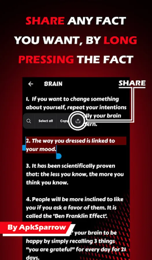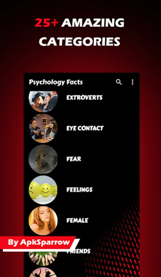 This app has more than 1000 psychology facts and physiological facts. This app contains 30+ categories and so many psychology facts and physiological facts.