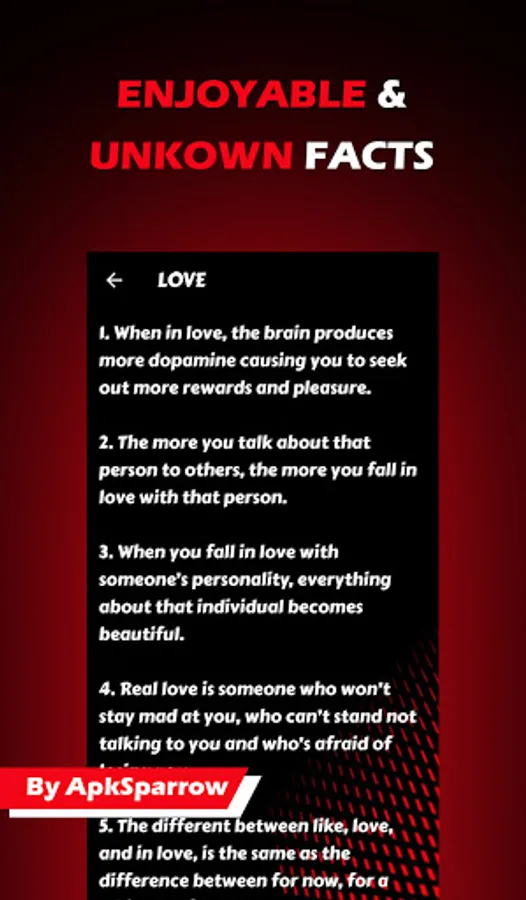 This app also contains many more facts that are not easy to find on the internet and we have added those psychology, aura and psychology facts in this app and many genuine facts are there. To know many tips and facts, about infatuation and many psychology articles or knowing about love science or science behind relationships and emotions, you can try this app.
