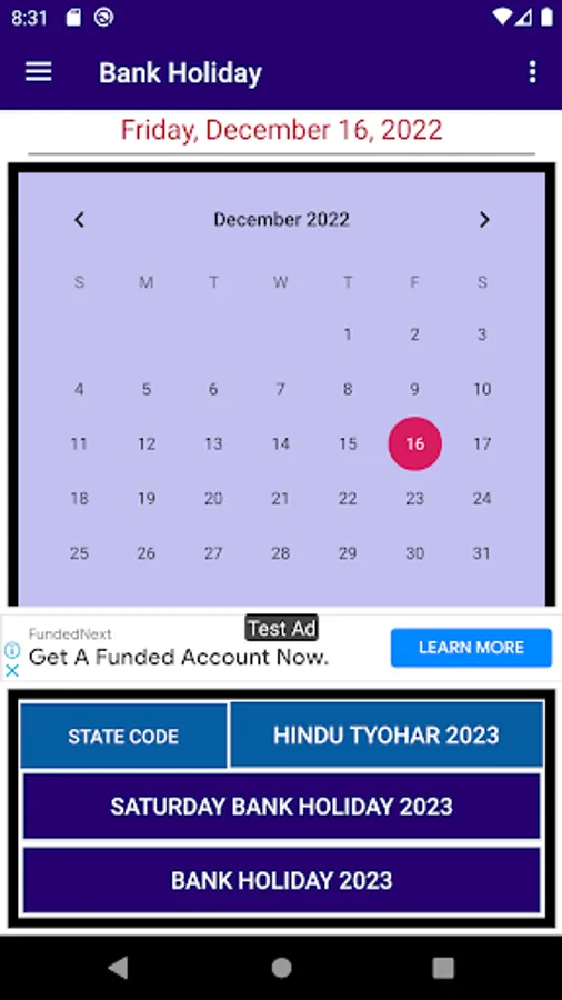 • 2023 Bank Holiday Receive Holidays & Festival Notification In The App.