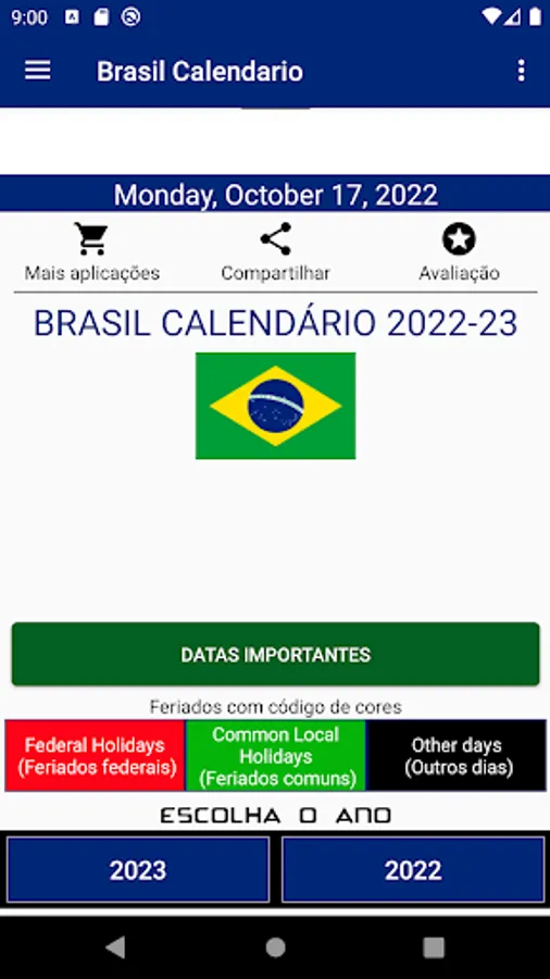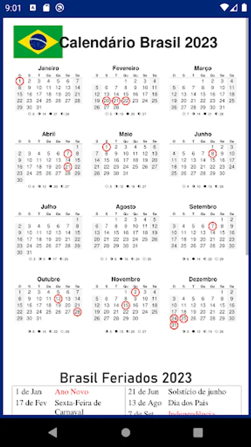 The Brasil Calendar app is available for the year 2023 with Holidays, 2023 and 2023