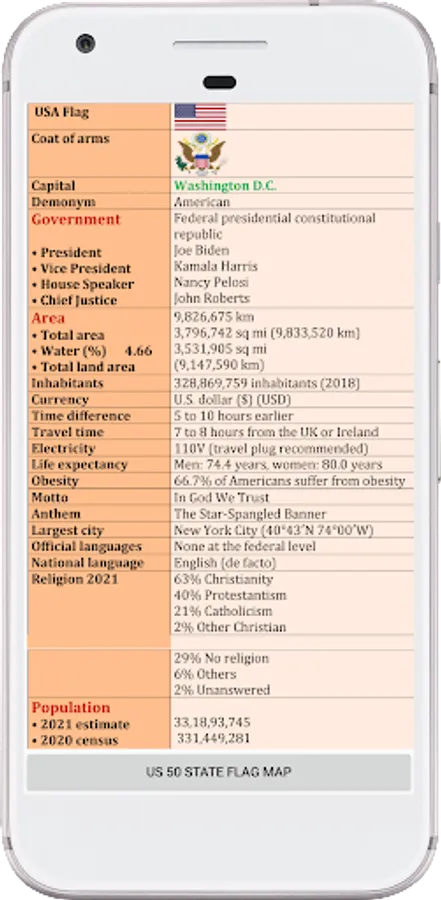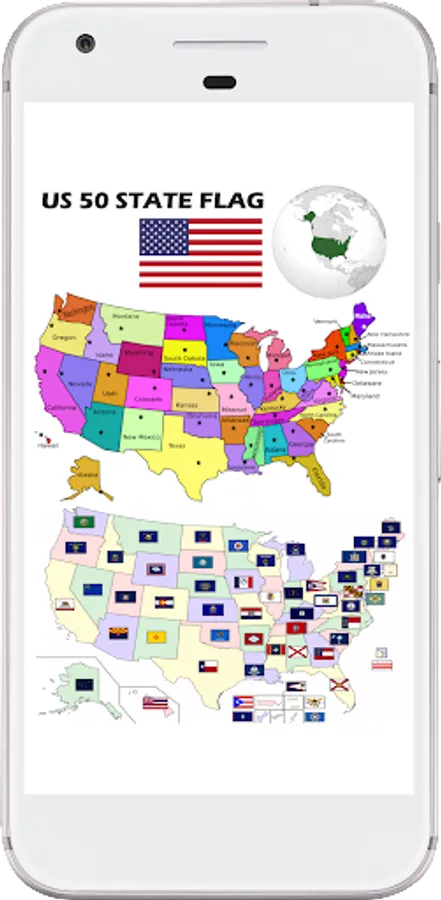 US State flags contain information about all 50 US states, capitals, the state map, and wiki links to know more about the state.