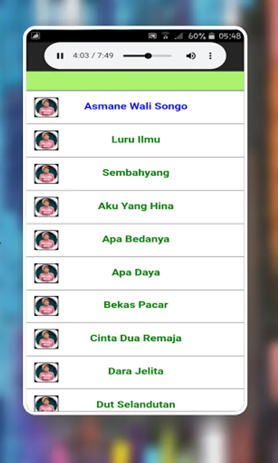 The following are the available offline songs: