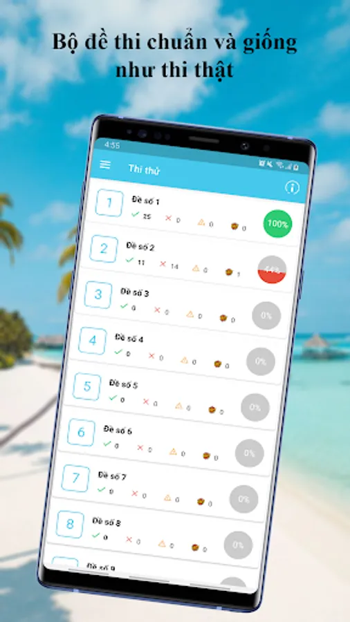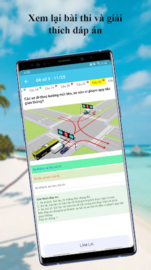 GPLX Test Preparation includes 600 questions used for exam review, test, and driving license to help you prepare to take all types of driver's licenses (A1, A2, A3, A4, B1 , B2, C, D, E, F) quickly and effectively.