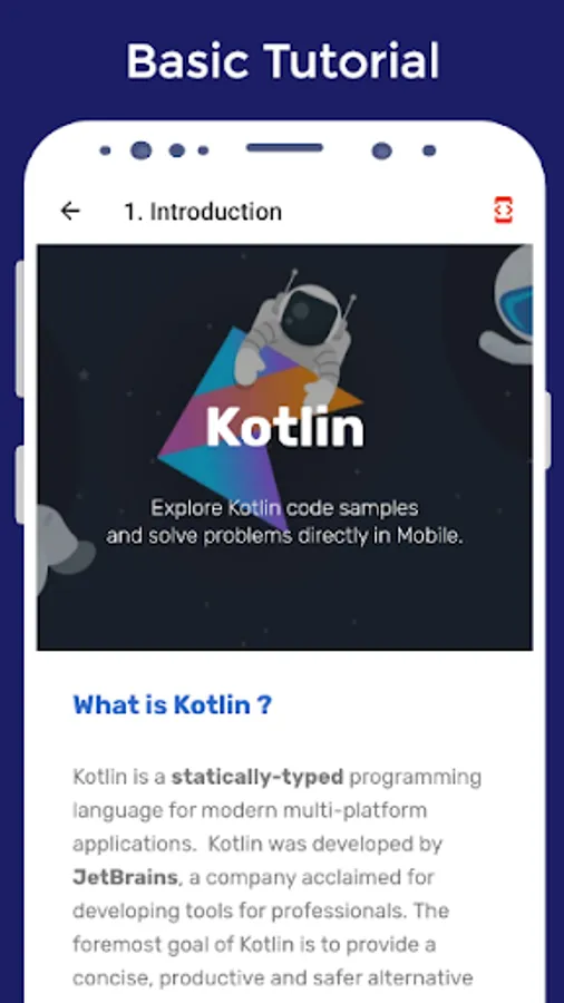 Kotlin tutorial offline provides basic and advanced concepts of Kotlin programming language. Our Kotlin tutorial is designed for beginners and professionals both.