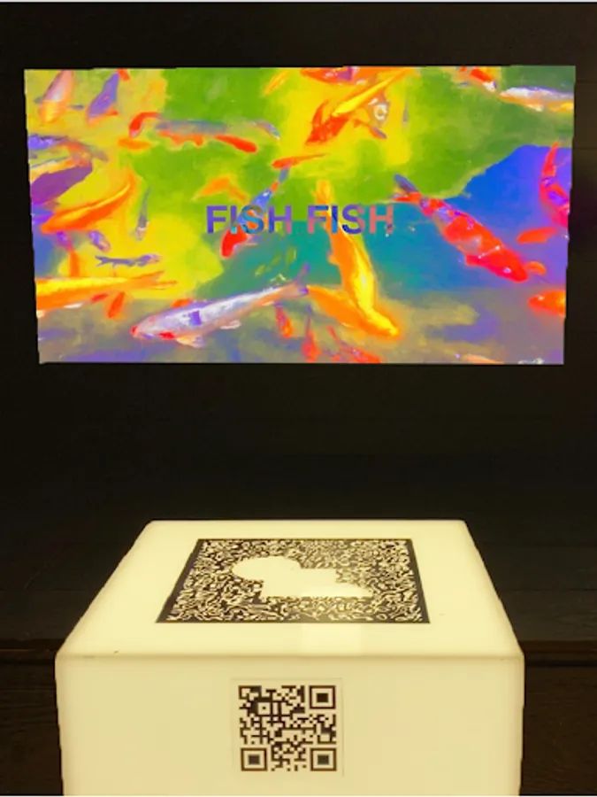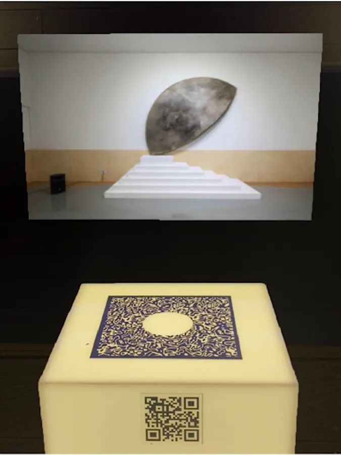 Illuminate the picture at the top of the pedestal of the ‘It’s Thin’ exhibition with the AR camera.