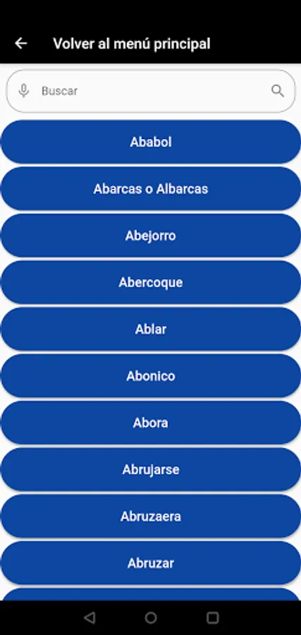 * List of all the words in the dictionary. If you click on any entry in the dictionary you will see its definition.