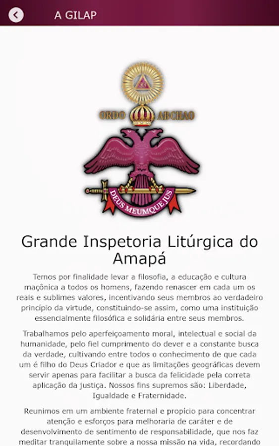 Through the "A GILAP" menu, access information about the values and purposes of the Great Liturgical Inspectorate of Amapá.